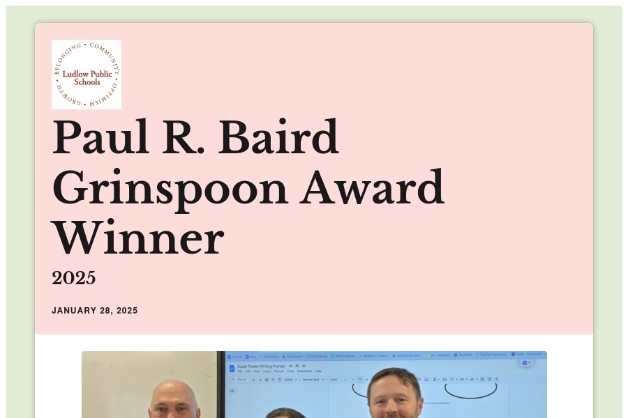Paul R. Baird Grinspoon Award Winner 2025 January 28, 2025 Grinspoon 2025 . . .
